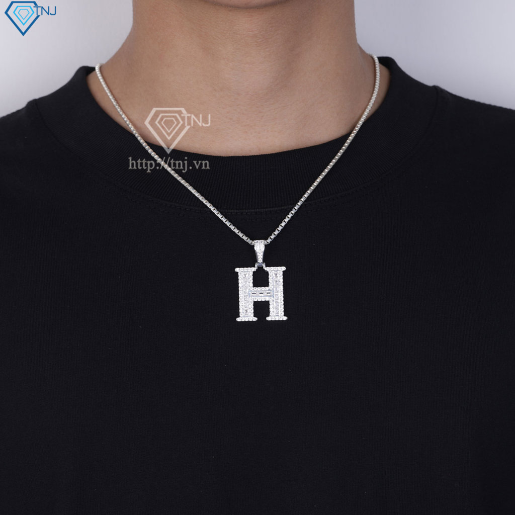 Dây chuyền bạc nam mặt chữ cái theo yêu cầu đẳng cấp được thiết kế cách điệu cực HOT mặt được đính những viên đá sang trọng - sản phẩm độc quyền bởi Trang Sức TNJ
