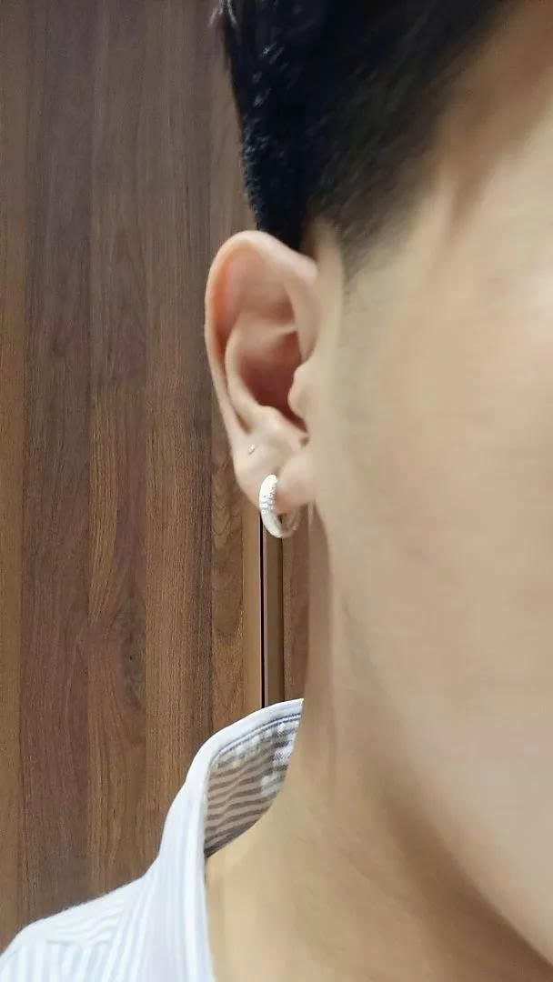 - Khuyên tai bạc nam khoen tròn full đá đính BTA0095 đeo lên tai thể hiện sự cá tính mạnh mẽ, sang trọng cho người đeo